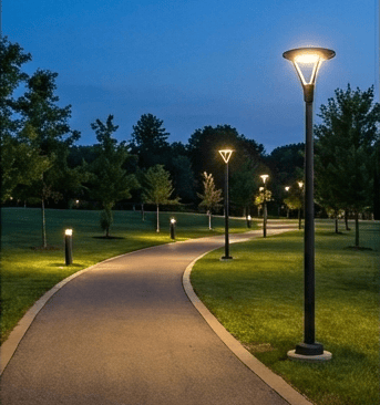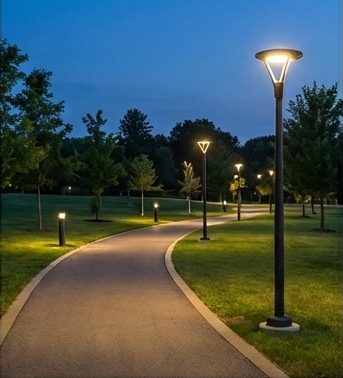 Decorative yet functional luminaires for parks, pathways and public gardens. They combine visual comfort, safety and aesthetic design to create welcoming outdoor environments.