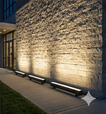 Linear LED wallwashers for architectural façades, bridges and monuments. They deliver uniform vertical illumination to highlight textures, colours and shapes while controlling glare and light spill.